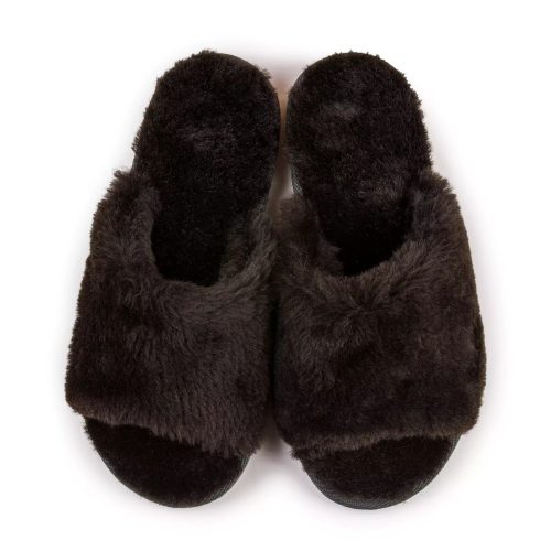 Czarne pantofle damskie obficie wyściełane wełną owczą pantofle dobrze leżą na stopie.