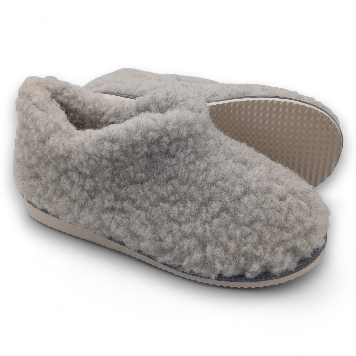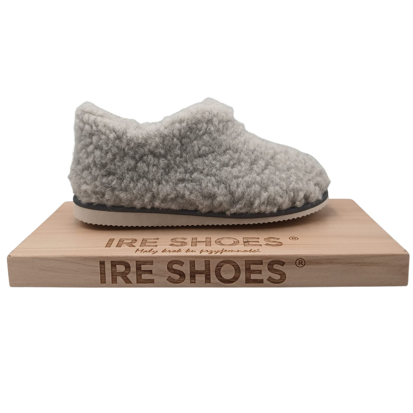 Kapcie damskie wełniane z runa owczego IRE SHOES szare ciepłe miękkie