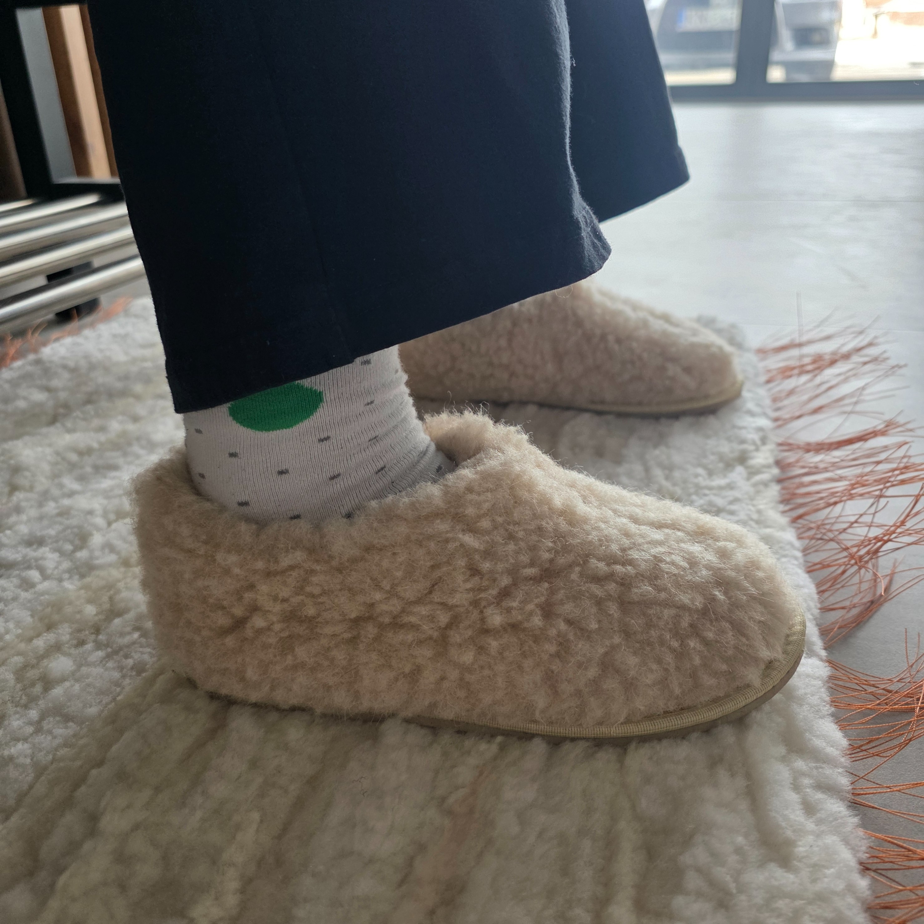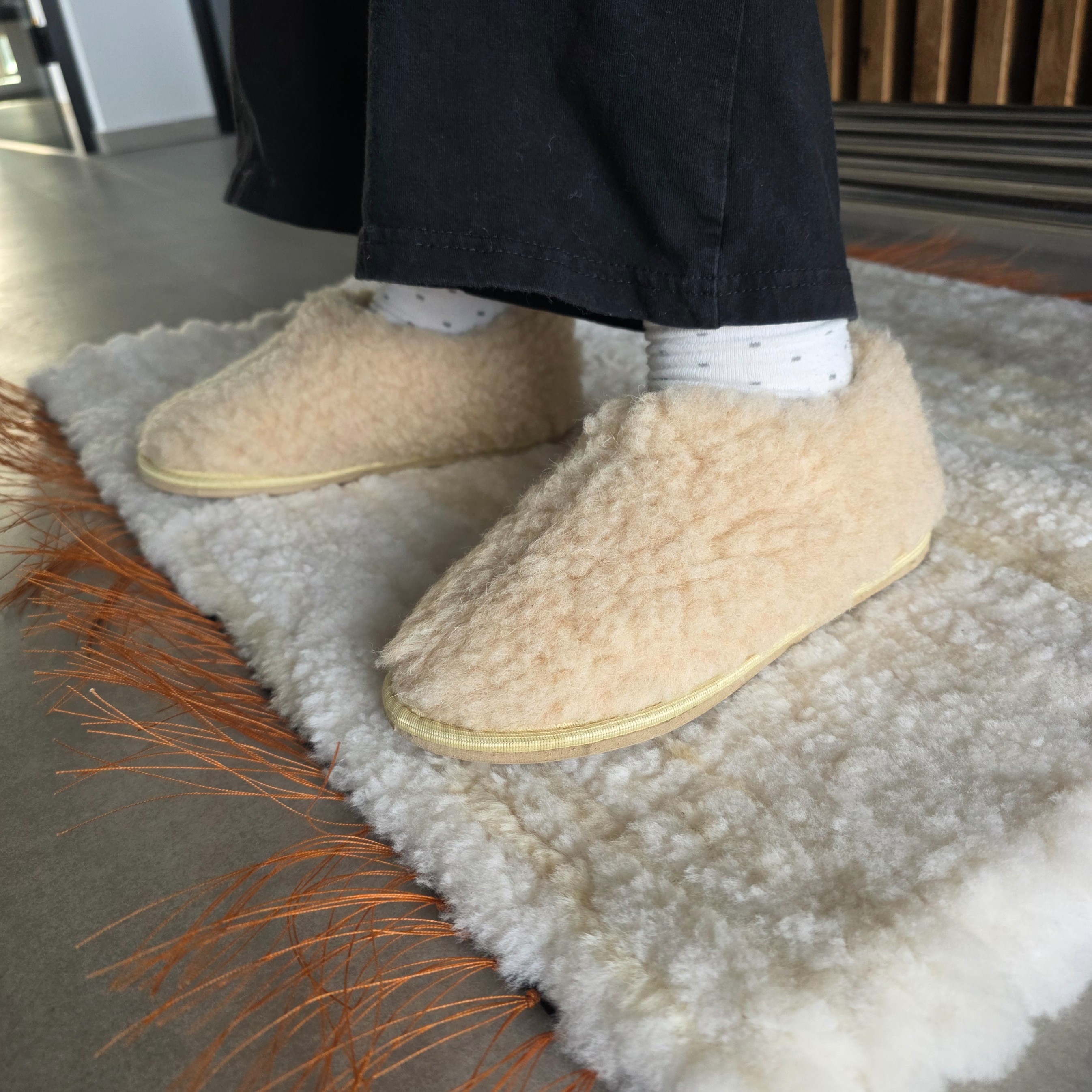 Ciepłe i wyjątkowo miękkie kapcie wełniane wykonane z 100% naturalnej strzyżonej wełny owczej. Doskonałe na chłodne dni – zapewniają ciepło, miękkość i oddychalność. Naturalna wełna dopasowuje się do kształtu stopy, utrzymuje ją suchą i zapobiega przegrzaniu.