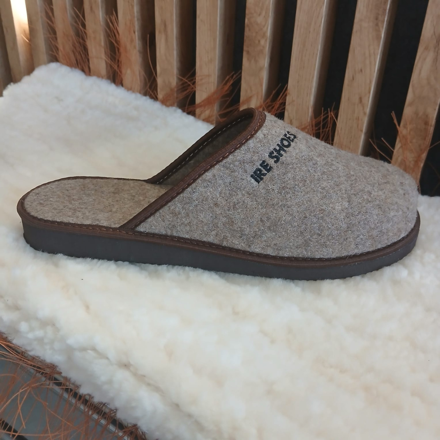 Nasze pantofle produkowane są ręcznie z naturalnych składników. Jednym z nich jest naturalny wełniany filc. Wybraliśmy go z wielu względów: