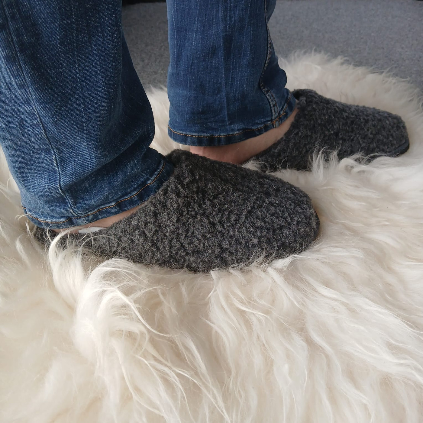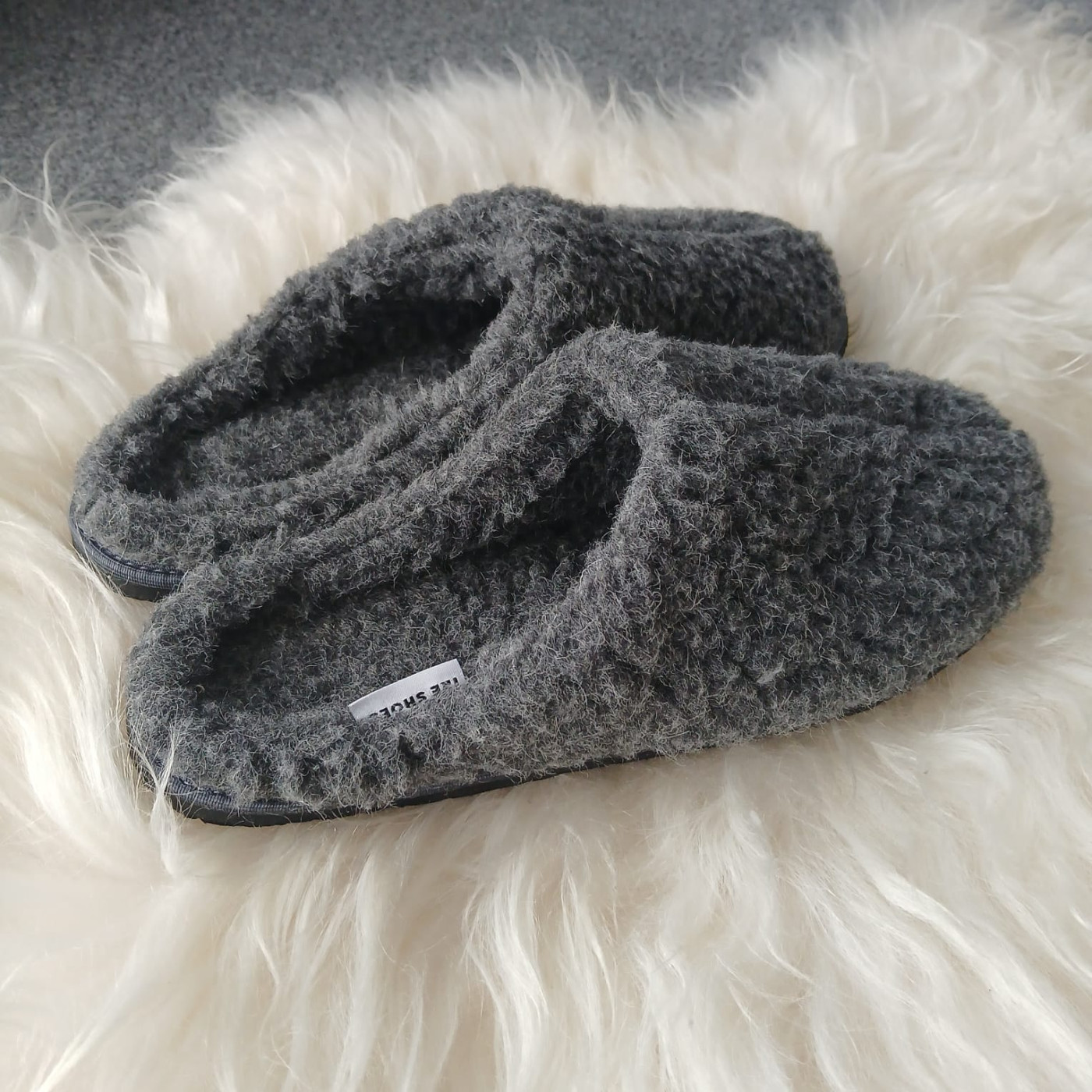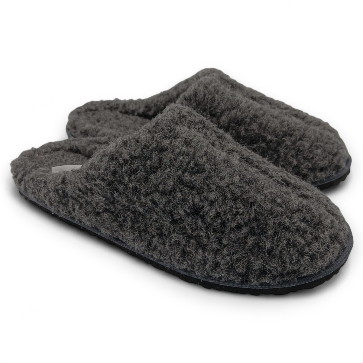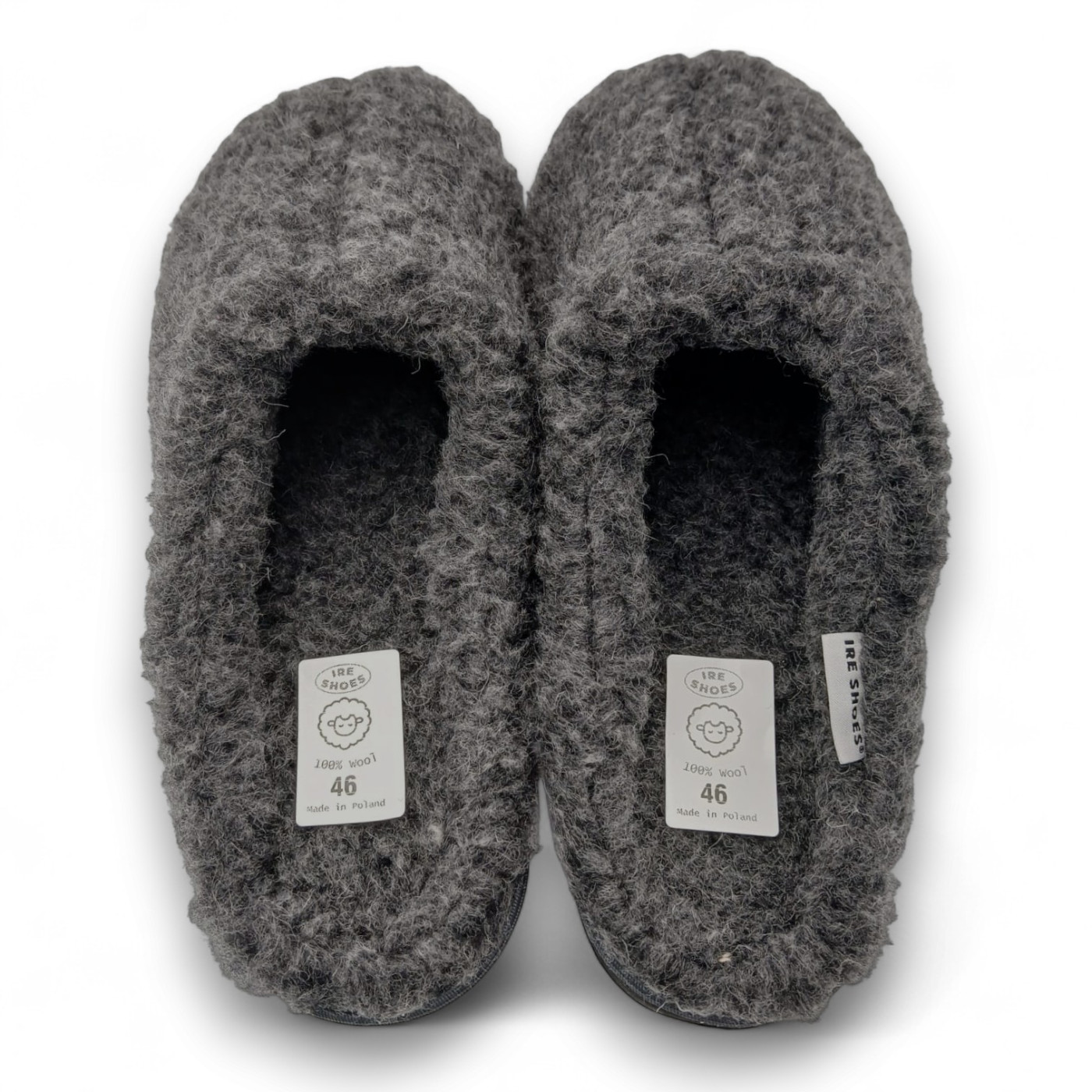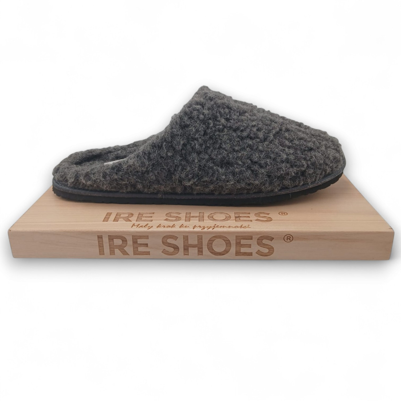 Kapcie męskie wełniane z runa owczego IRE SHOES grafit ciepłe miękkie