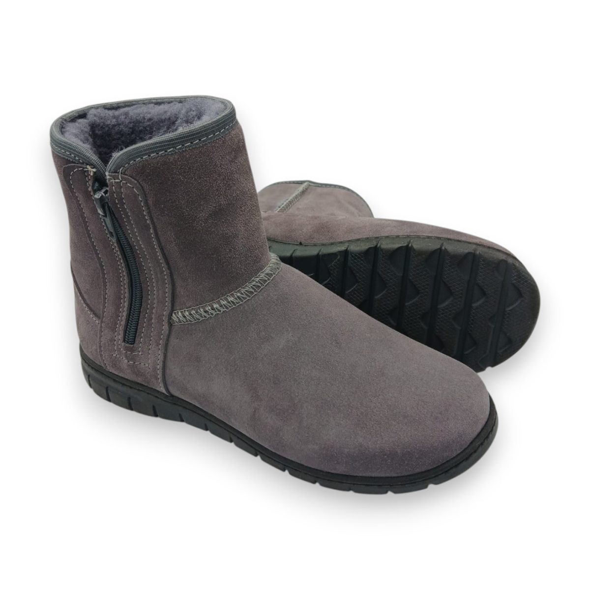 Polskie botki damskie IRE SHOES – naturalna skóra welurowa i wnętrze z miękkiej, ciepłej wełny owczej.
